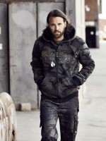 Mens sweat jacket lined with warm berber fleece, large print on chest, kangaroo pockets,... more