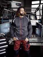 Men's sweat jacket with attached hood with drawstring, contrasting details, reflective print on shoulder area, Terrax Workwear Label
