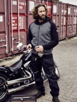 Men's sweat jacket with print on hood and arm, elasticated hood in contrasting colour, zip pockets, Roadsign Labelling
