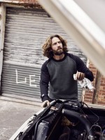 Men's sweatshirt with crew neck, two colours, logo print on neck, Terratrend Job Label more