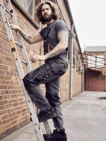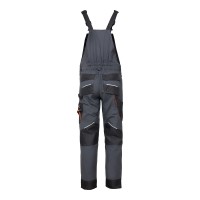 many practical leg and back pockets, details in contrast colour and reflective material more
