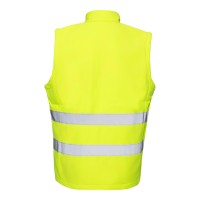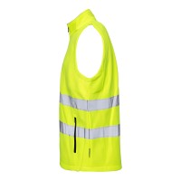 High-visibility waistcoat made of softshell fabric, with TPU membrane, soft fleece inside, two zipped pockets, reflective tapes, certified according to EN ISO 20471 class I, wind- and water-repellent, breathable, Terrax Workwear Label